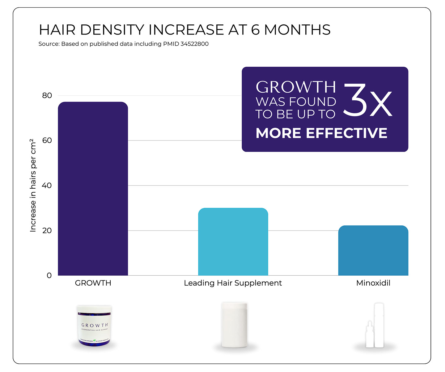 In an Independent Consumer Study, presented at the International Society of Hair Restoration Surgery World Congress 2022, GROWTH outperformed leading hair supplement brands and leading hair drug products in comparative studies.